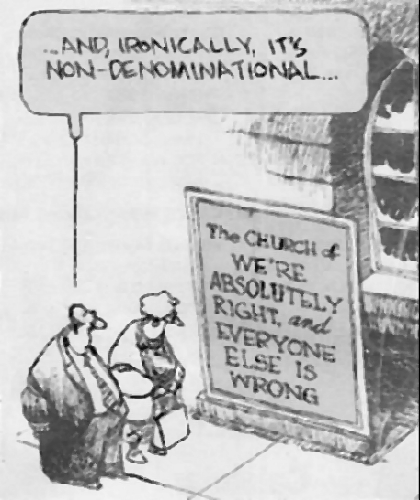 A minister concluded that his church was getting into serious financial troubles. Coincidentally, by chance, while checking the church storeroom, he discovered several cartons of new bibles that had never been opened and distributed. So at his Sunday sermon, he asked for three volunteers from the congregation who would be willing to sell the bibles door-to-door for $10 each to raise desperately needed money for the church. Peter, Paul and Louie all raised their hands to volunteer for the task. The reverend knew that Peter and Paul earned their livings as salesmen and were likely capable of selling some bibles, but he had serious doubts about Louie who was just a little local farmer who had always tended to keep to himself because he was embarrassed by his speech impediment. Poor little Louis stuttered badly. But, not wanting to discourage poor Louis, the reverend decided to let him try anyway. He sent the three of them away with the back seat of their cars stacked with bibles and asked them to meet with him and report the results of their door-to-door selling efforts the following Sunday. When they got together, the reverend immediately asked Peter, "Well, Peter, how did you make out selling our bibles last week?" Proudly handing the reverend an envelope, Peter replied, "Pastor, using my sales prowess, I was able to sell 20 bibles, and here's the $200 collected on behalf of the church" "Fine job, Peter!" the reverend said, vigorously shaking his hand. "You are indeed a fine salesman and the Church is indebted to you." Turning to Paul, he asked, "And how many bibles did you manage to sell for the church last week?" Paul, smiling and sticking out his chest, confidently replied, "Reverend, I am a professional salesman and was happy to give the church the benefit of my expertise. Last week I sold 28 bibles on behalf of the church, and here's $280 I collected." The reverend responded, "That's absolutely splendid, Paul. You are truly a professional salesman and the church is also indebted to you." Apprehensively, the reverend turned to little Louie and said, "And Louie, did you manage to sell any bibles last week?" Louie silently offered the reverend a large envelope. The reverend opened it and counted the contents. "What is this?" the reverend exclaimed. "Louie, there's $3200 in here! Are you suggesting that you sold 320 bibles for the church, door to door, in just one week? Louie just nodded. "That's impossible!" both Peter and Paul said in unison. "We are professional salesmen, yet you claim to have sold 10 times as many bibles as we could." "Yes, this does seem unlikely," the reverend agreed. "Please explain how you managed to accomplish this, Louie." Louie shrugged. "I-I-I- re-re-really do-do-don't kn-kn-know f-f-f-for sh-sh-sh-sure," he stammered. Impatiently, Peter interrupted. "For crying out loud, Louie, just tell us what you said to them when they answered the door!" "A-a-a-all I-I-I s-s-said wa-wa-was," Louis replied, "W-w-w-w-would y-y-y-you l-l-l-l-l-like t-t-to b-b-b-buy th-th-th-this b-b-b-b-bible f-f-for t-t-ten b-b-b-bucks ---o-o-o-or--- wo-wo-would yo-you j-j-j-just l-like m-m-me t-t-to st-stand h-h-here and r-r-r-r-r-read it t-to y-y-you?" A man and his dog were walking along a road. The man was enjoying the scenery, when it suddenly occurred to him that he was dead. He remembered dying, and that the dog walking beside him had been dead for years. He wondered where the road was leading them. After a while, they came to a high, white stone wall along one side of the road. It looked like fine marble. At the top of a long hill, it was broken by a tall arch that glowed in the sunlight. When he was standing before it he saw a magnificent gate in the arch that looked like mother-of-pearl, and the street that led to the gate looked like pure gold. He and the dog walked toward the gate, and as he got closer, he saw a man at a desk to one side. When he was close enough, he called out, "Excuse me, where are we?" "This is Heaven, sir," the man answered. "Wow! Would you happen to have some water?" the man asked. Of course, sir. Come right in, and I'll have some ice water brought right up." The man gestured, and the gate began to open. "Can my friend," gesturing toward his dog, "come in, too?" the traveler asked. "I'm sorry, sir, but we don't accept pets." The man thought a moment and then turned back toward the road and continued the way he had been going with his dog. After another long walk, and at the top of another long hill, he came to a dirt road leading through a farm gate that looked as if it had never been closed. There was no fence. As he approached the gate, he saw a man inside, leaning against a tree and reading a book. "Excuse me!" he called to the man. "Do you have any water?" "Yeah, sure, there's a pump over there, come on in." "How about my friend here?" the traveler gestured to the dog. "There should be a bowl by the pump." They went through the gate, and sure enough, there was an old-fashioned hand pump with a bowl beside it. The traveler filled the water bowl and took a long drink himself, then he gave some to the dog. When they were full, he and the dog walked back toward the man who was standing by the tree. "What do you call this place?" the traveler asked. "This is Heaven," he answered. "Well, that's confusing," the traveler said. "The man down the road said that was Heaven, too." "Oh, you mean the place with the gold street and pearly gates? Nope. That's hell." "Doesn't it make you mad for them to use your name like that?" "No, we're just happy that they screen out the folks who would leave their best friends behind." Who Took My Place... One day, a man went to visit a church. He got there early, parked his car, and got out. Another car pulled up, and the driver got out and said,"I always park there! You took my place!" The visitor went inside for Sunday School, found an empty seat and sat down. A young lady from the church approached him and stated, "That's my s
