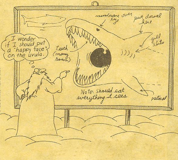An alternate genesis: God came to visit Eve. "So, how is everything going?" inquired God. "It's all so beautiful, God," she replied. "The sunrises and sunsets are breathtaking. The smells, the sights, everything is wonderful, but I have just one problem. It's these three breasts you have given me. The middle one pushes the other two out and I am constantly knocking them with my arms, catching them on branches and snagging them on bushes. They are a real pain," reported Eve. And Eve went on to tell God that since many other parts of her body came in pairs, such as her limbs, eyes, ears, etc..........she felt that having only two breasts might leave her body more "symmetrically balanced," as she put it. "That is a fair point," replied God, "But it was my first shot at this, you know. I gave some animals six teats, but I figured that you needed only half of that. But, I see that you are right. I will fix it up right away." So God reached down, removed the middle breast and tossed it into the bushes. Three weeks passed, and God once again visited Eve in the Garden of Eden. "Well, Eve, how is my favorite creation?" "Just fantastic," she replied, " ...but for one oversight on your part. You see, all the animals are paired off. The ewe has a ram, and the cow has her bull. All the animals have a mate except me. I feel so alone." God thought for a moment and said, "You know, Eve, you are right. How could I have overlooked this? You do need a mate, and I will immediately create a man from a part of you. Now let's see............where did I put that useless boob?"